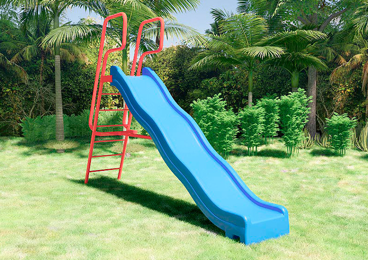 Um escorregador de plástico com estrutura de metal para playgrounds é uma estrutura projetada para fornecer diversão e entretenimento para crianças em áreas de recreação ao ar livre. Esse tipo de escorregador é composto por dois principais componentes: a estrutura de metal e o escorregador de plástico.